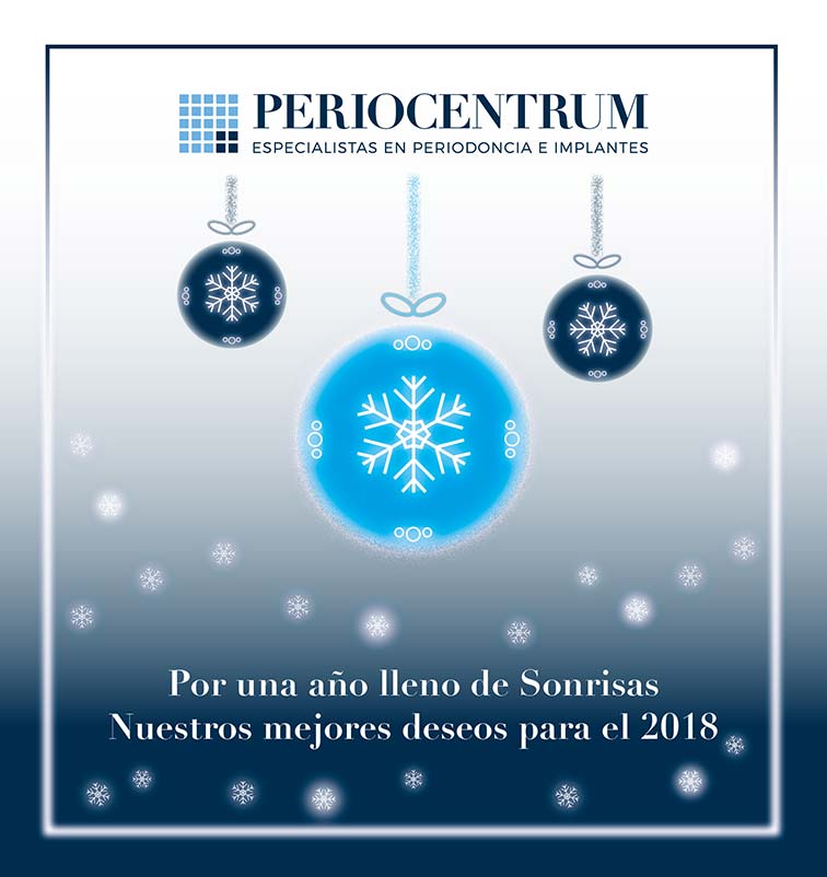 Desde PerioCentrum queremos desear unas muy felices fiestas a todos nuestros pacientes, compañeros de profesión, colaboradores y especialmente a todo el equipo que forma parte de las clínicas PerioCentrum, cuyo trabajo y dedicación constantes convierten a PerioCentrum en la referencia del sector odontológico en Terapia Periodontal y de Implantes. Por un año lleno de Sonrisas. Nuestros mejores deseos para el 2018.